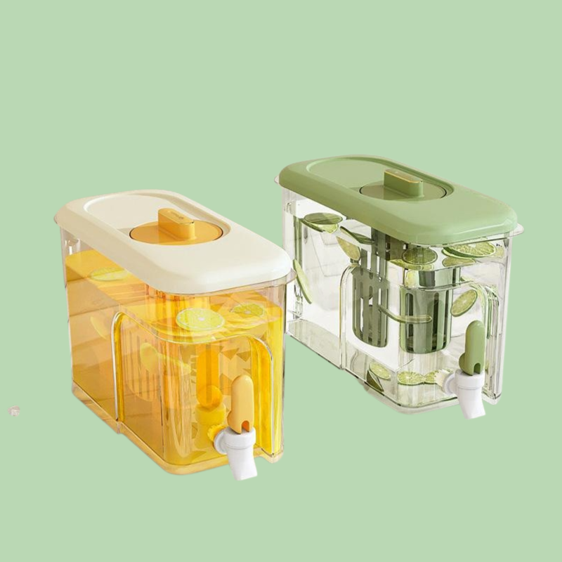 大容量で家族に最適な食品級冷水ポット。蛇口付きで注ぎやすく、冷蔵庫に収納可能。清潔で安全な素材を使用。